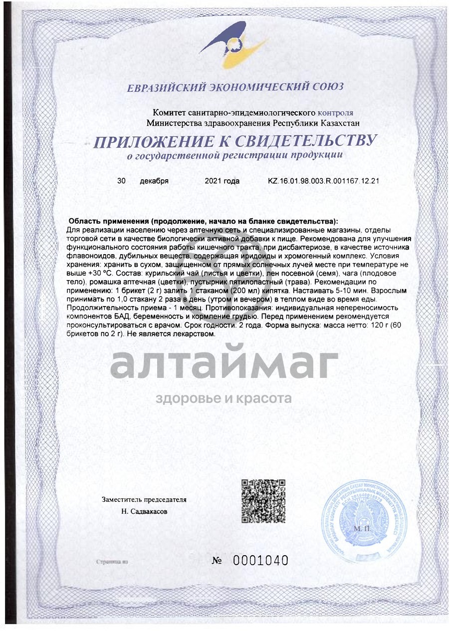 Брикет содержит только натуральные измельченные травы. Такая форма выпуска даёт ряд преимуществ: исключает передозировку и сохраняет биологически активное действие трав. А также позволяет готовить целебный настой, используя только кипяток, а не водяную баню.