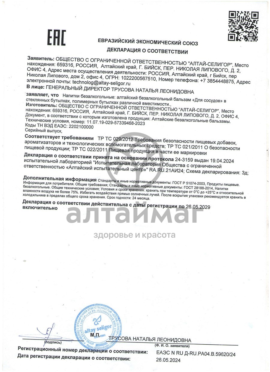 Есть вопросы по товару "Бальзам для сосудов Алтай-Селигор 200мл"?