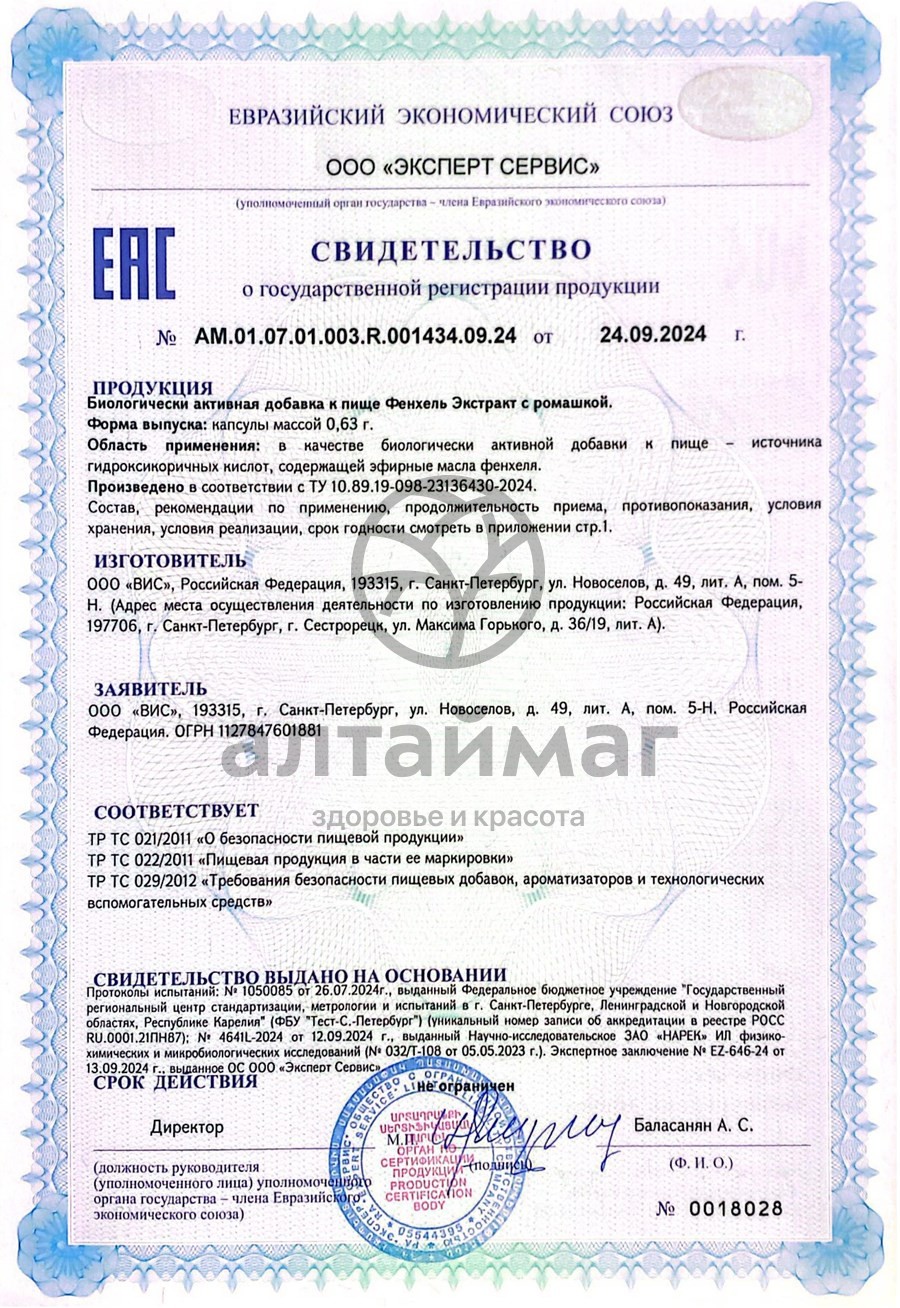 Есть вопросы по товару "Экстракт Фенхеля с ромашкой ВИС 30 капсул"?
